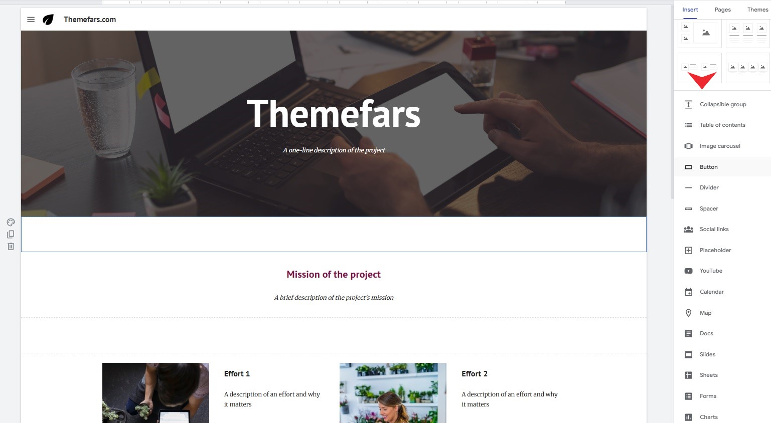 یکی از قابلیتهای کاربردی Google Sites، افزودن ویجتهای آماده است که به شما کمک میکند وبسایت خود را حرفهایتر و تعاملیتر کنید بدون نیاز به حتی یک خط کدنویسی.
