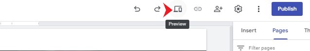 پس از افزودن صفحات وب و محتوای خود، بهتر است پیشنمایشی از وبسایت خود داشته باشید. این کار میتواند به شما کمک کند تا مشخص کنید که آیا میخواهید تصاویر، تمها، پسزمینهها، طرحهای رنگی یا سایر محتوای وبسایت خود را تغییر دهید یا خیر. برای پیشنمایش وبسایت خود، میتوانید دکمه Preview را در بالای صفحه وب انتخاب کنید. این دکمه شبیه به یک دستگاه تلفن هوشمند در مقابل لپتاپ است.